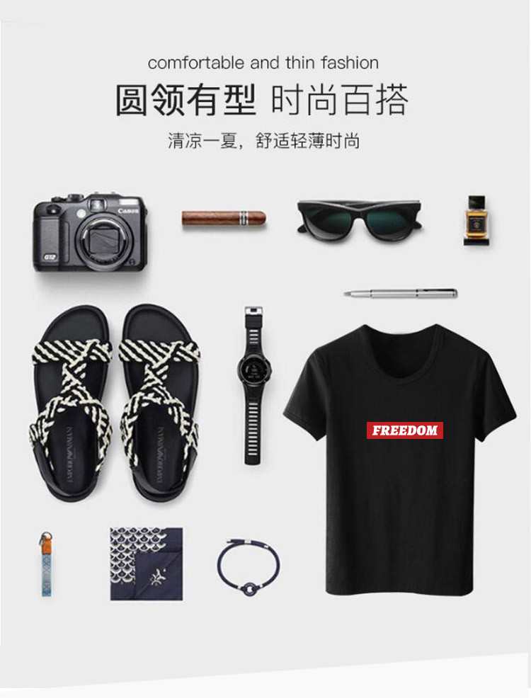 【100%純棉】2021春季爆款t恤男士韓版潮流字母印花短袖圓領T恤男