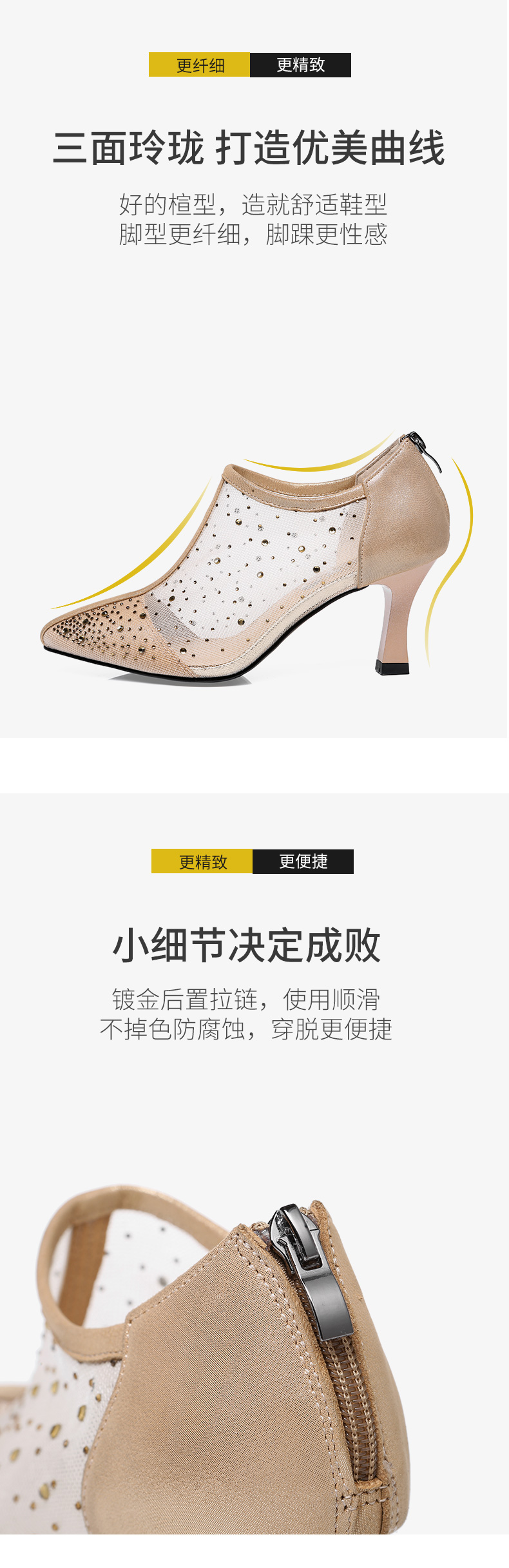浪莎法式尖頭高跟鞋女細(xì)跟2021春夏新款深口鏤空網(wǎng)紗水鉆休閑單鞋