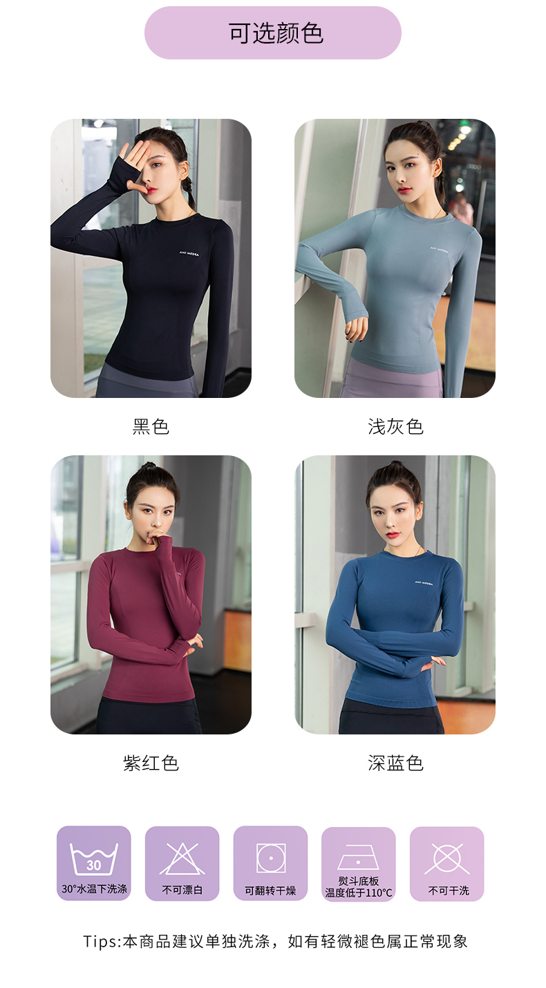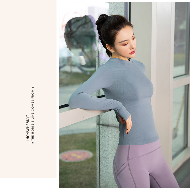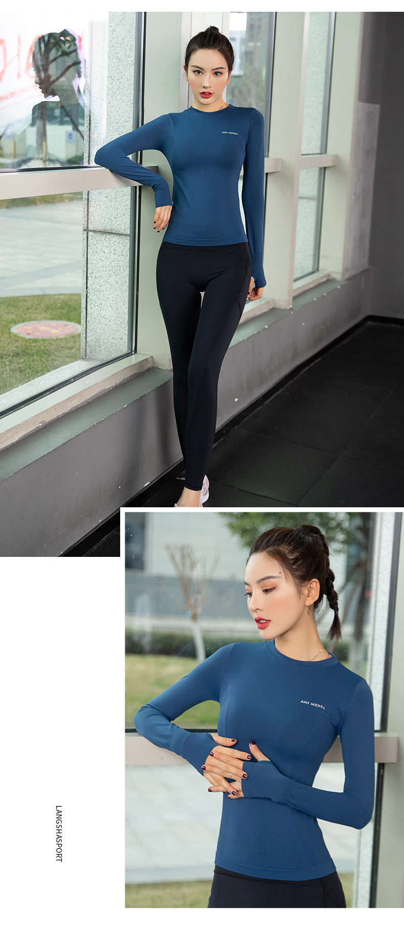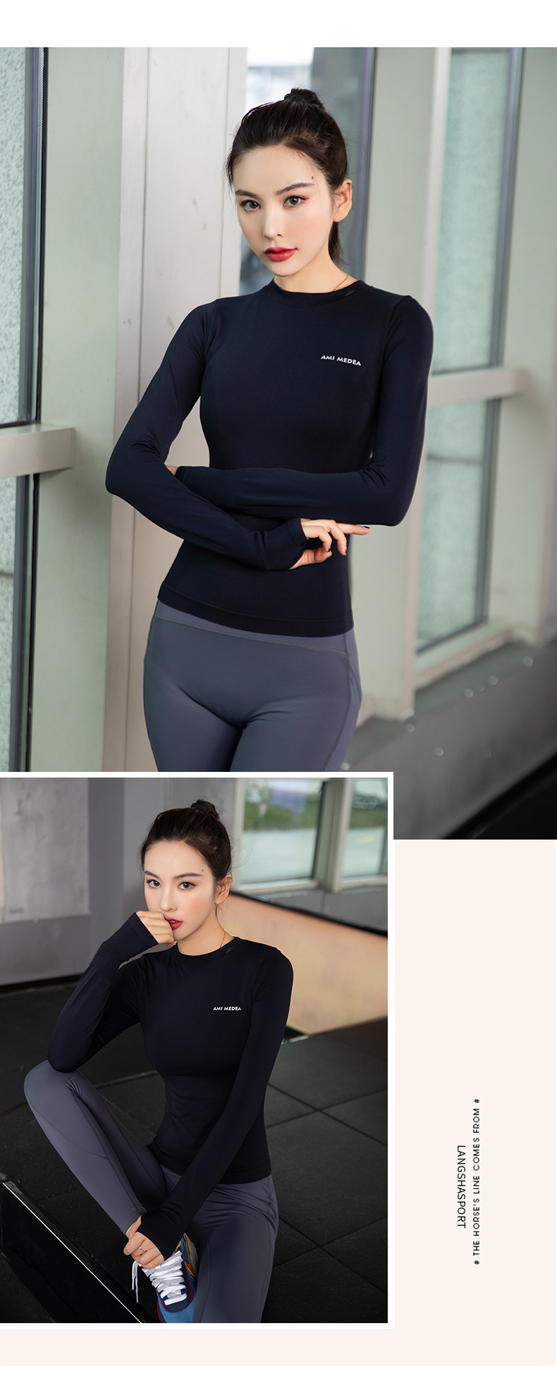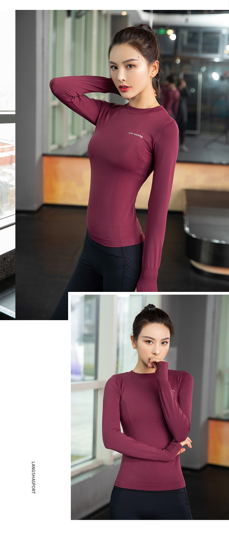浪莎運(yùn)動(dòng)上衣女修身瑜伽服跑步秋冬吸汗緊身透氣速干新款健身長袖