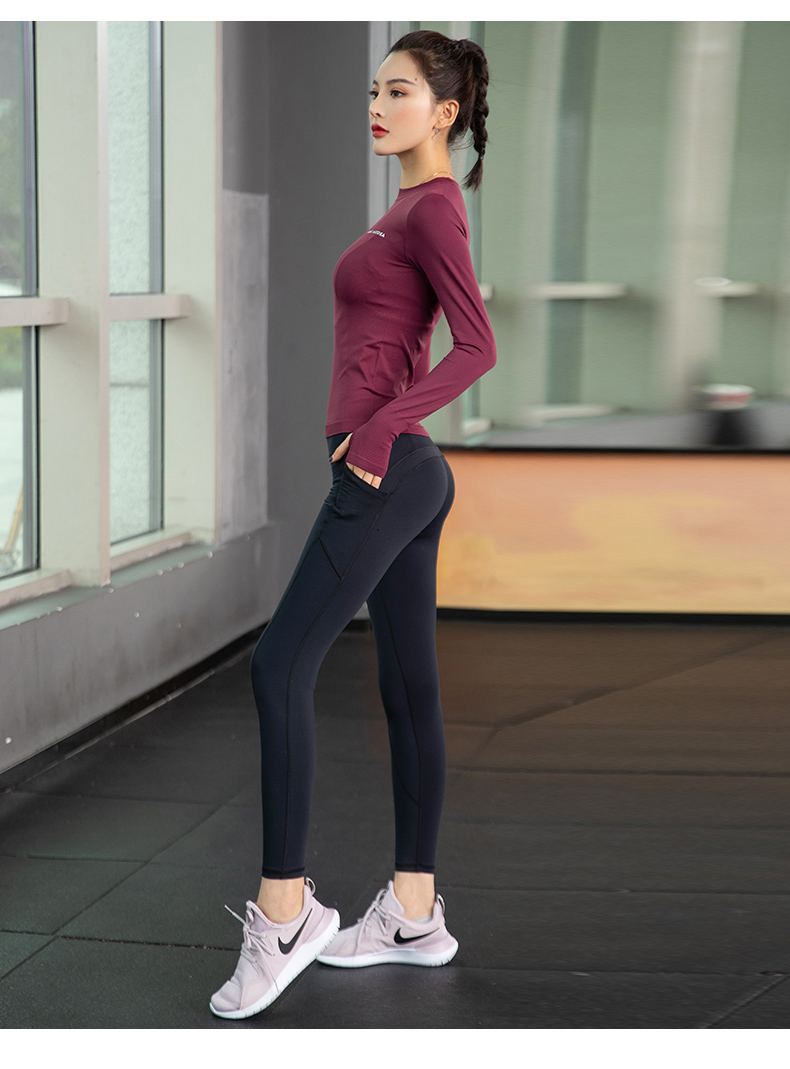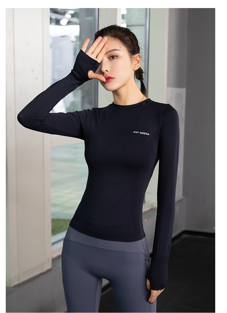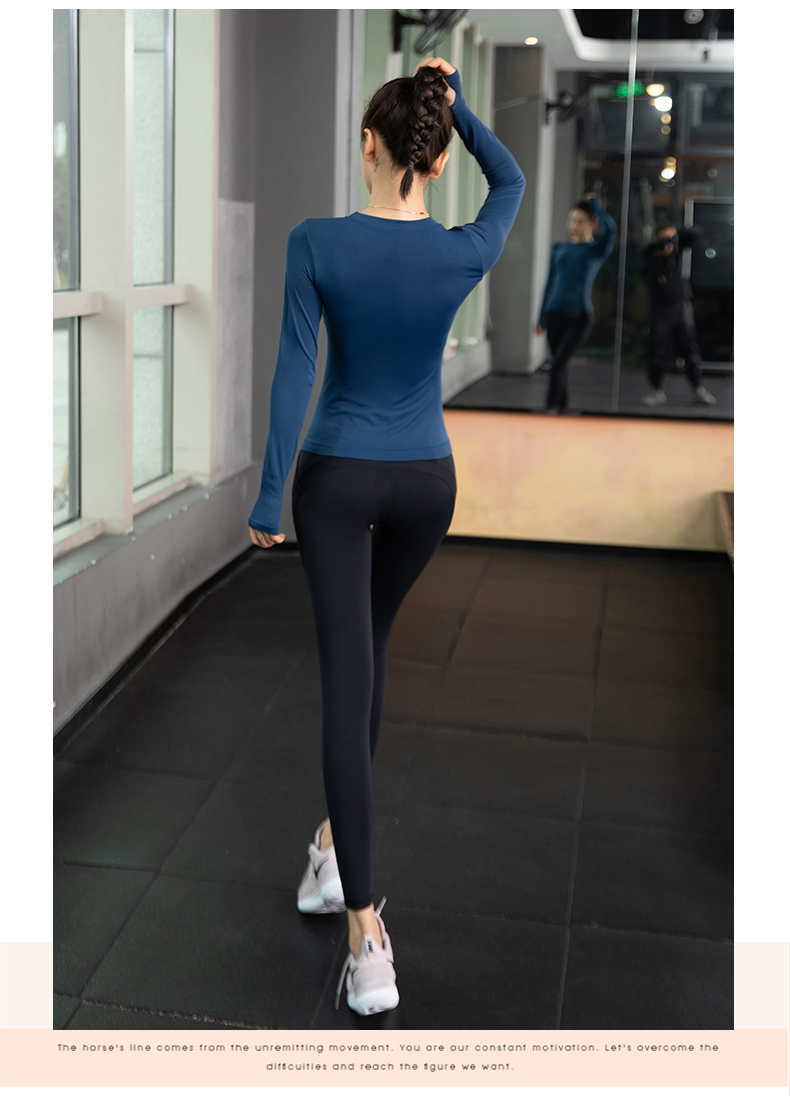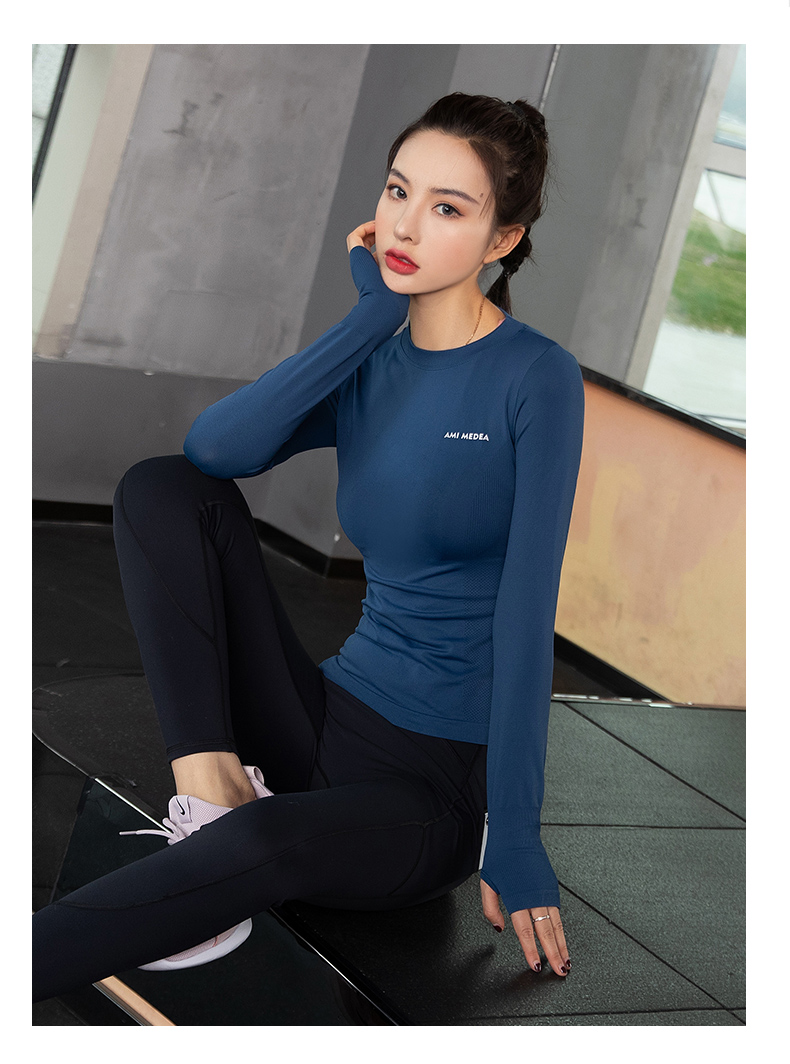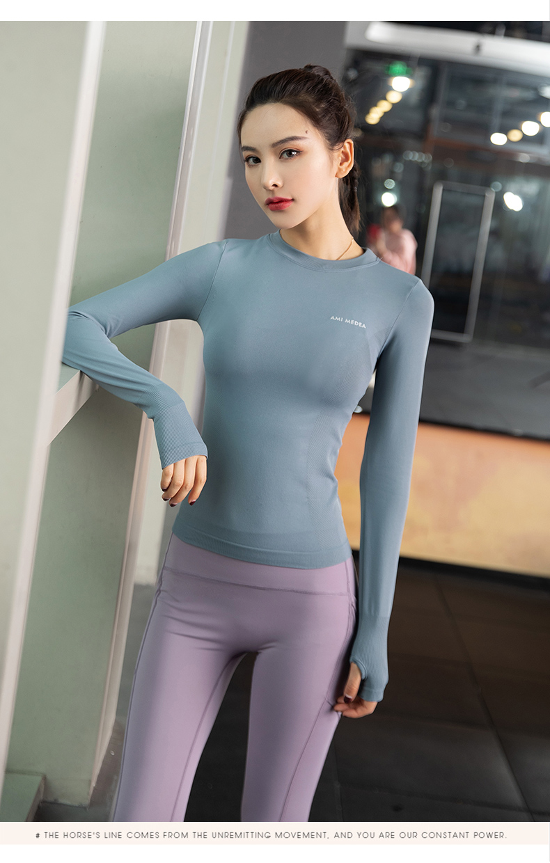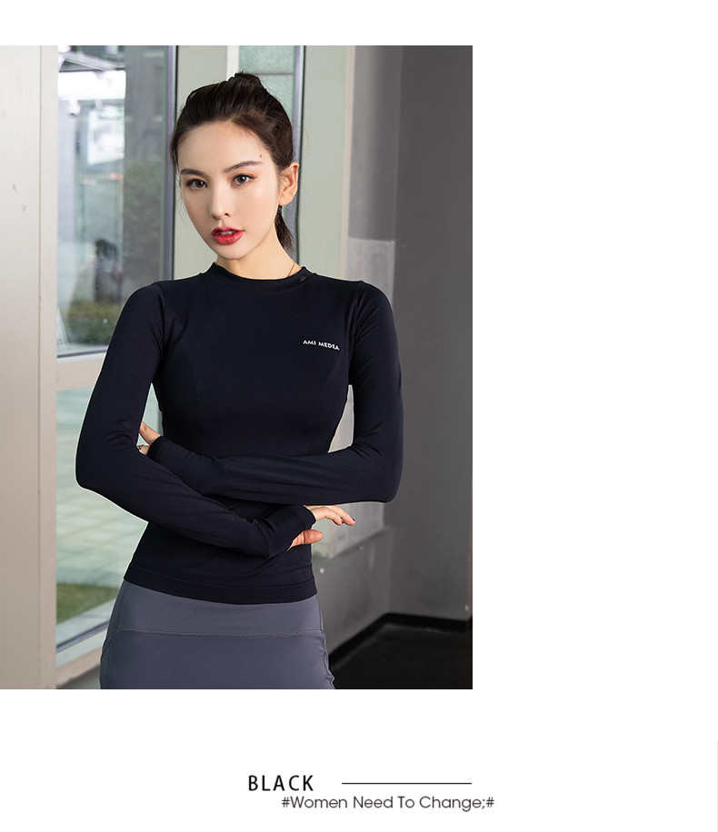浪莎運(yùn)動(dòng)上衣女修身瑜伽服跑步秋冬吸汗緊身透氣速干新款健身長袖