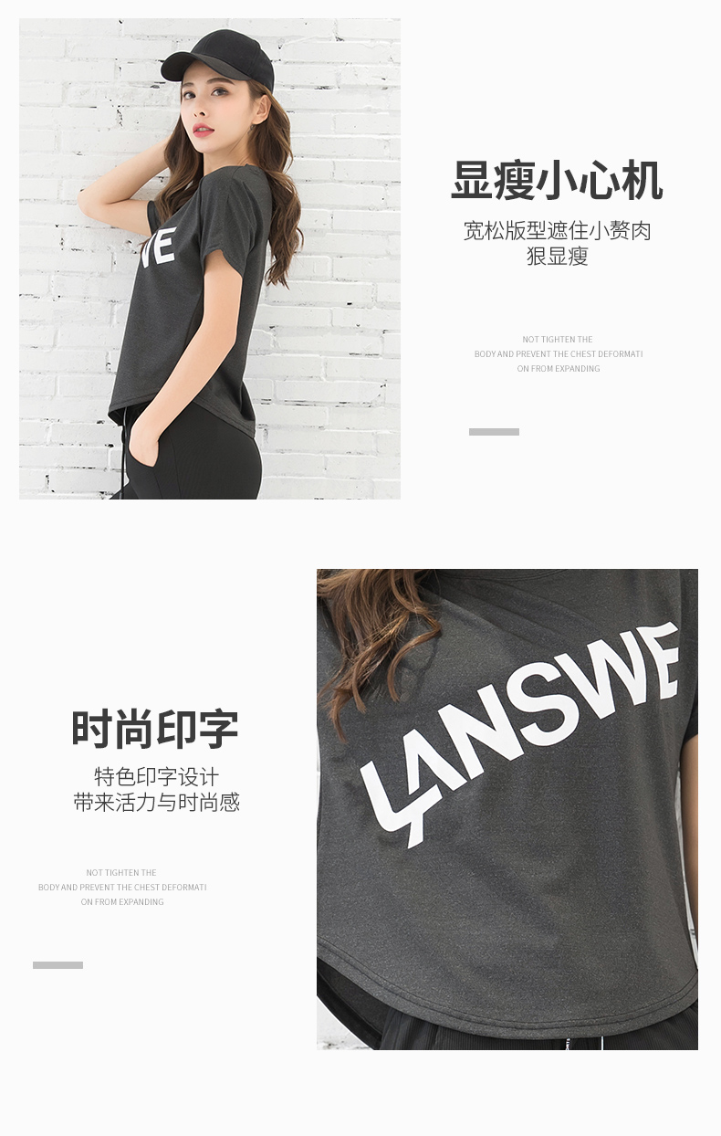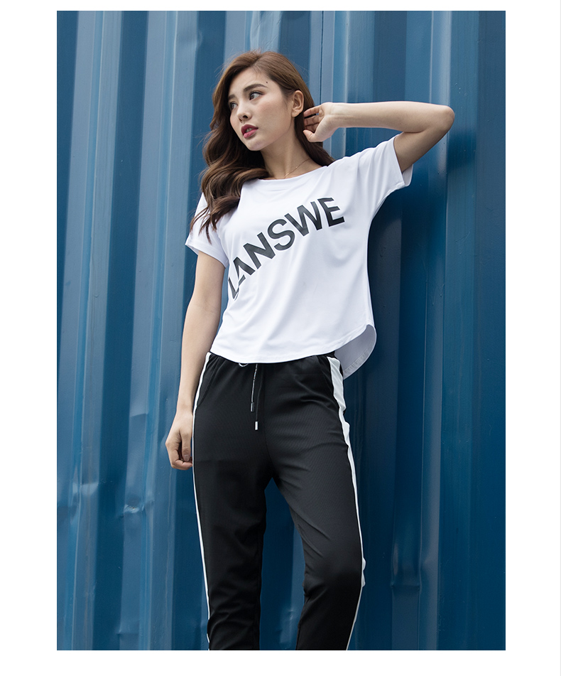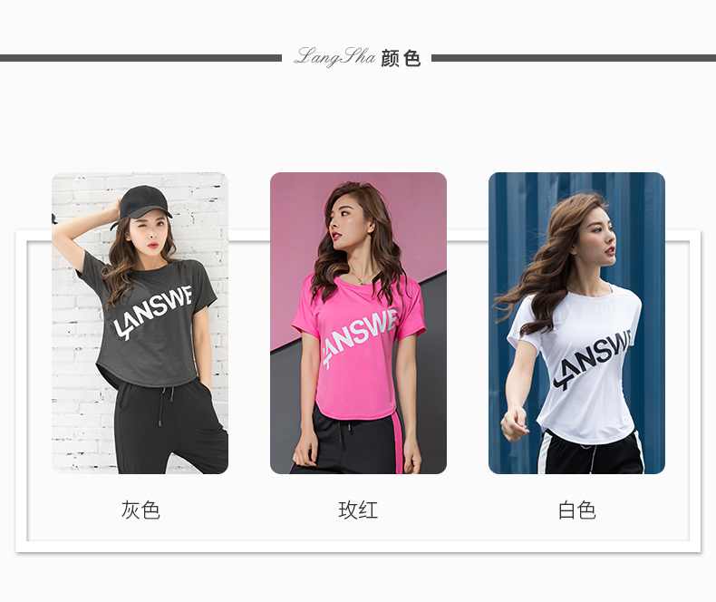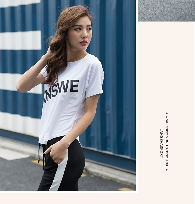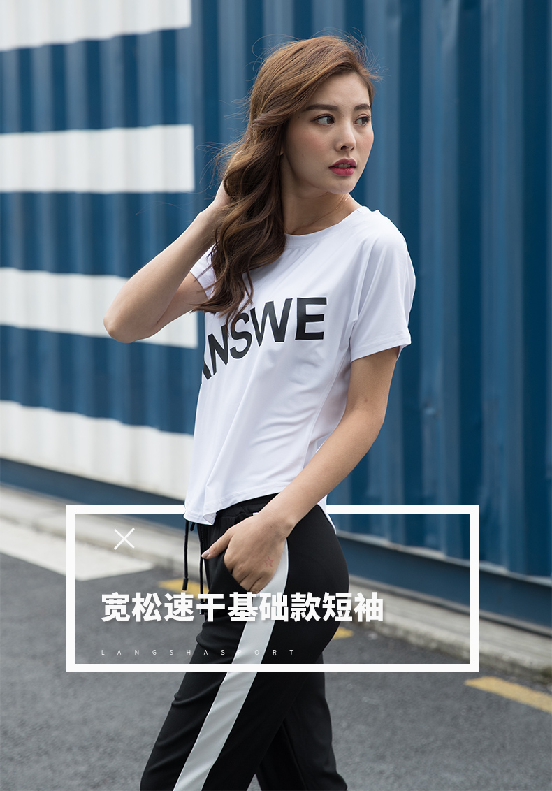 浪莎運動短袖T恤女大碼寬松健身服跑步白色春夏速干上衣瑜伽半袖