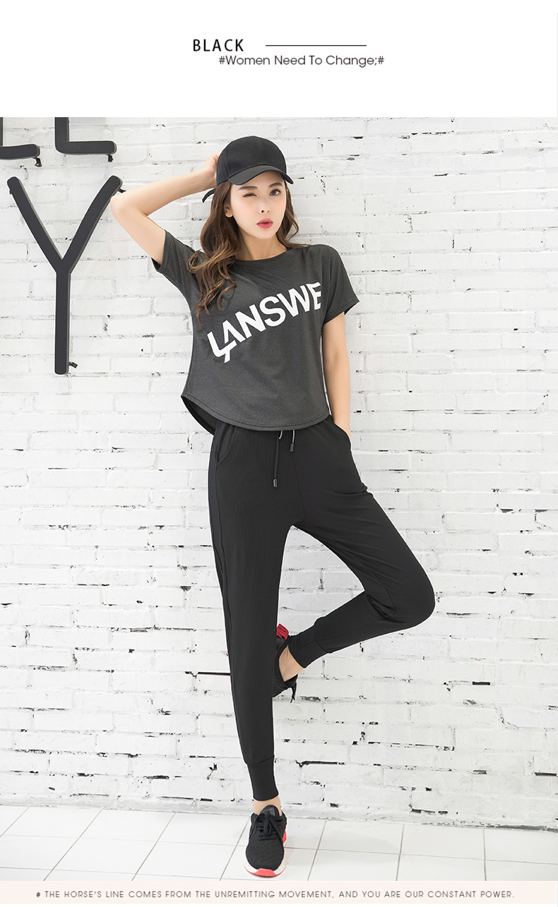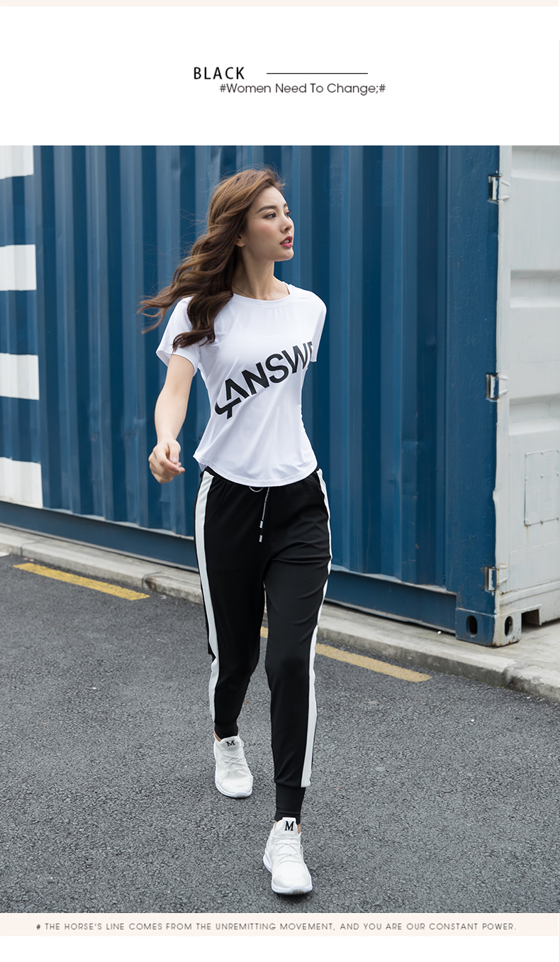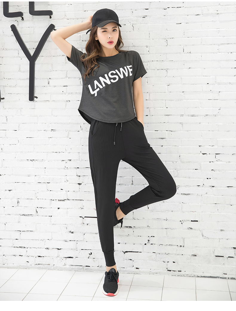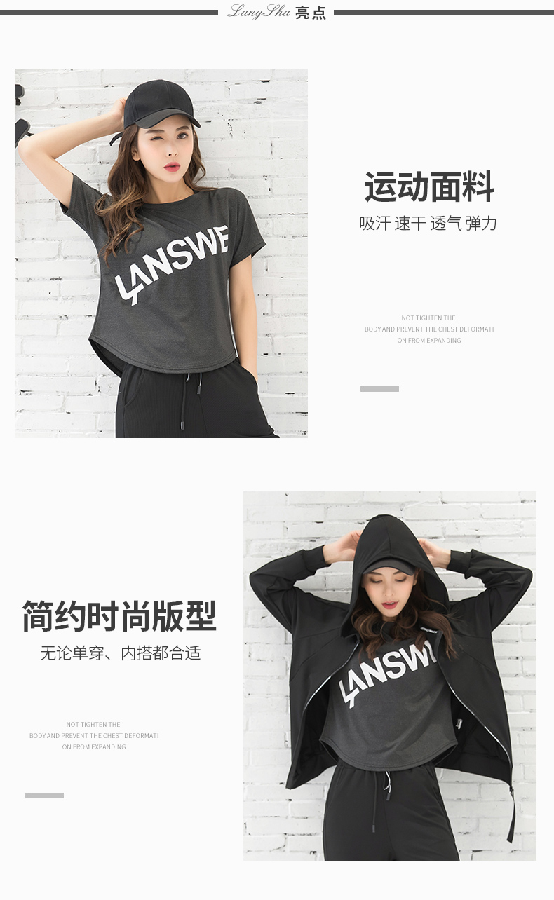 浪莎運動短袖T恤女大碼寬松健身服跑步白色春夏速干上衣瑜伽半袖