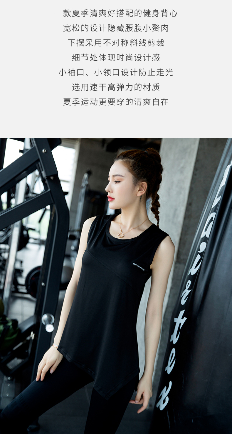 浪莎運動背心女寬松外穿瑜伽上衣無袖速干T恤跑步時尚長健身罩衫