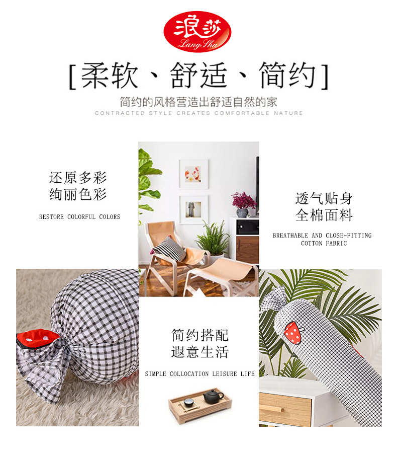浪莎夏天純棉糖果圓柱枕頭夏季睡覺(jué)側(cè)睡夾腿抱枕長(zhǎng)條枕女生可拆洗