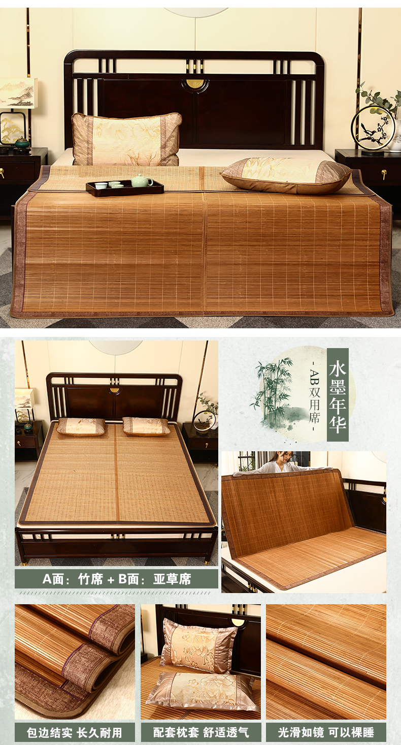 夏季碳化竹席可折疊席子單雙人宿舍1.5米1.8m床空調(diào)涼席雙面可用