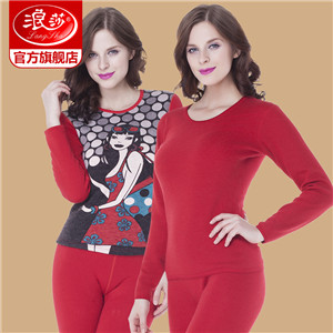 浪莎保暖內(nèi)衣女士加厚加絨保暖衣冬天大紅本命年秋衣秋褲