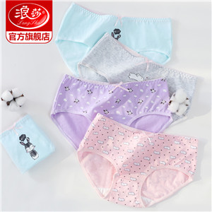 浪莎女士?jī)?nèi)褲女三角褲中腰春夏少女純棉面料透氣全棉日系女生褲衩
