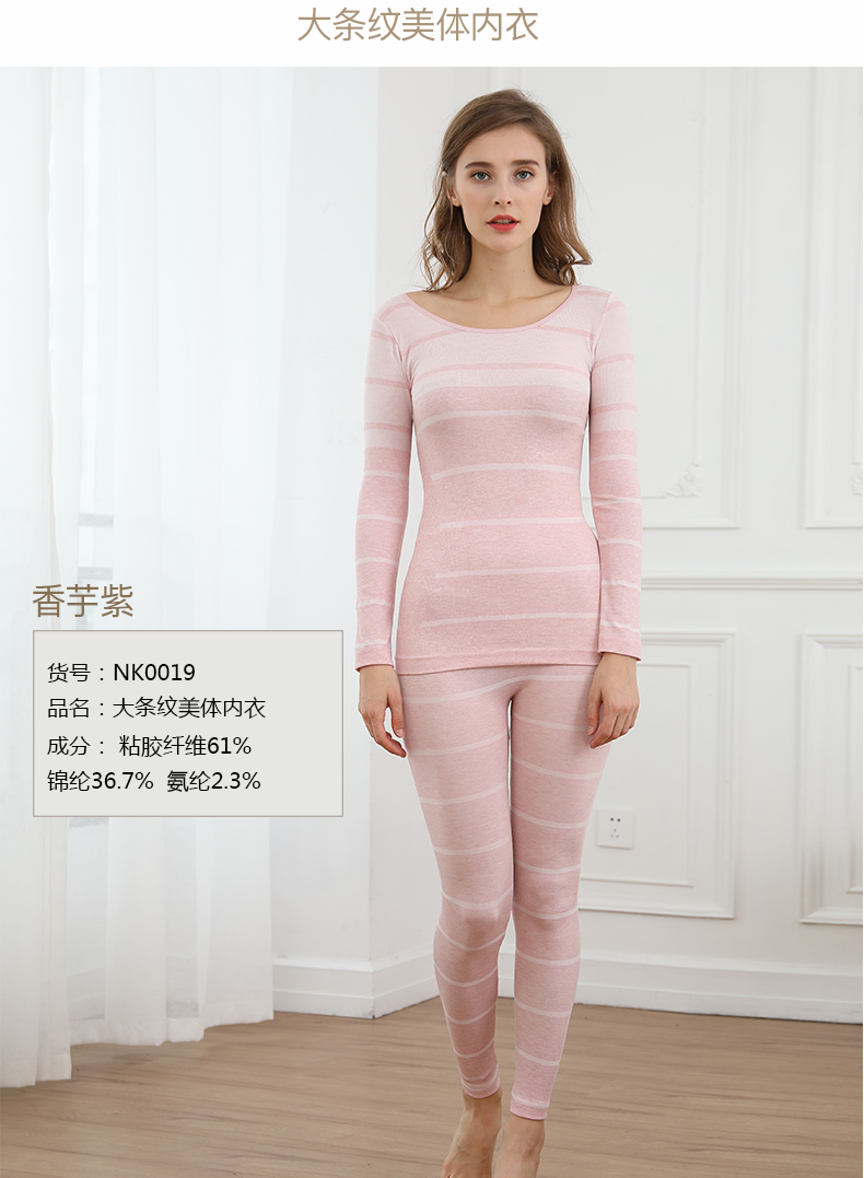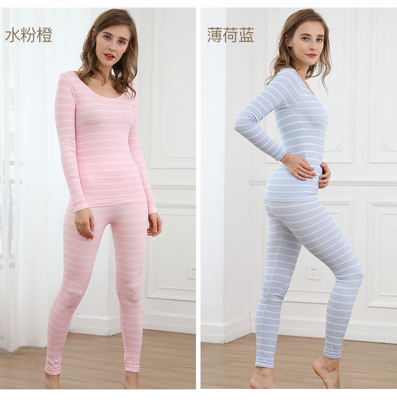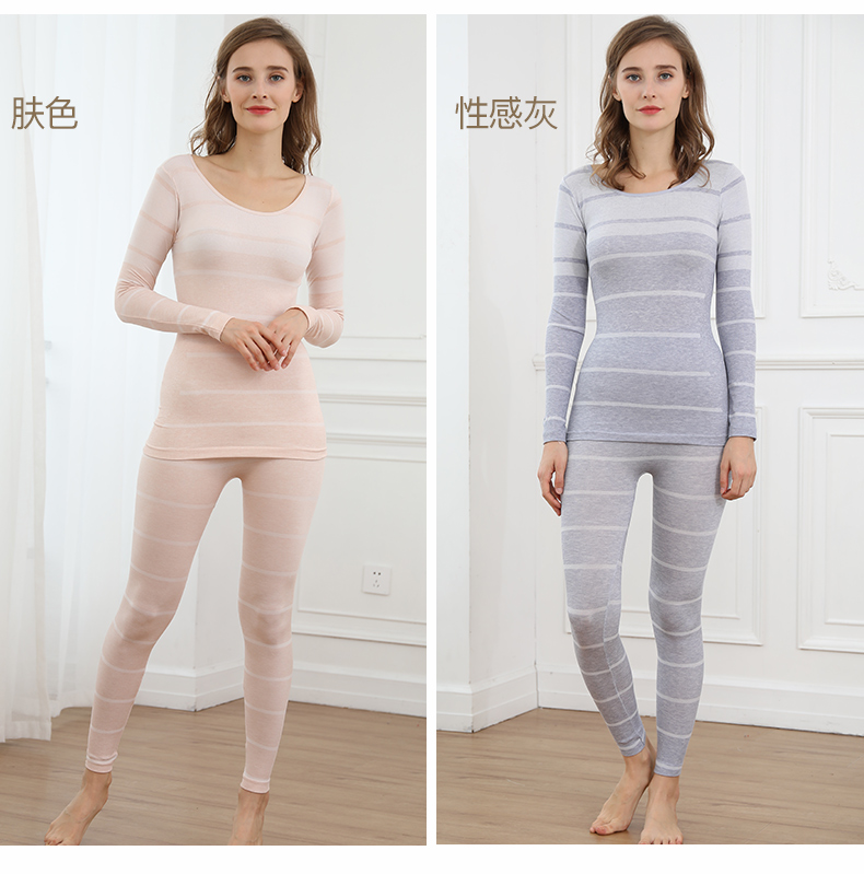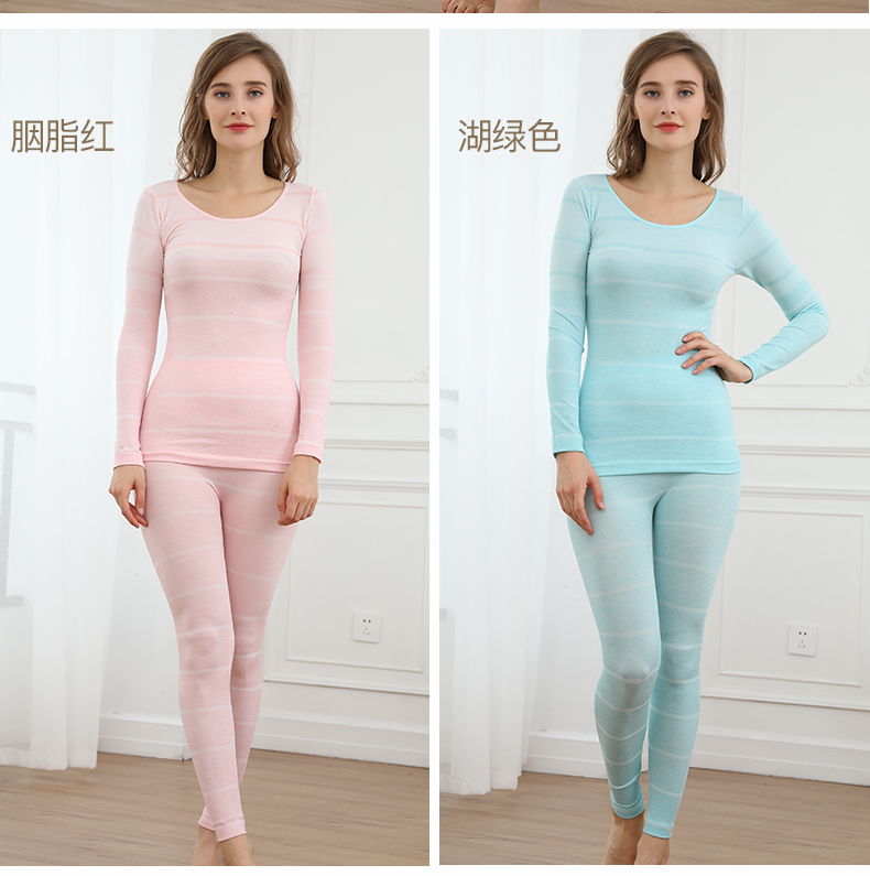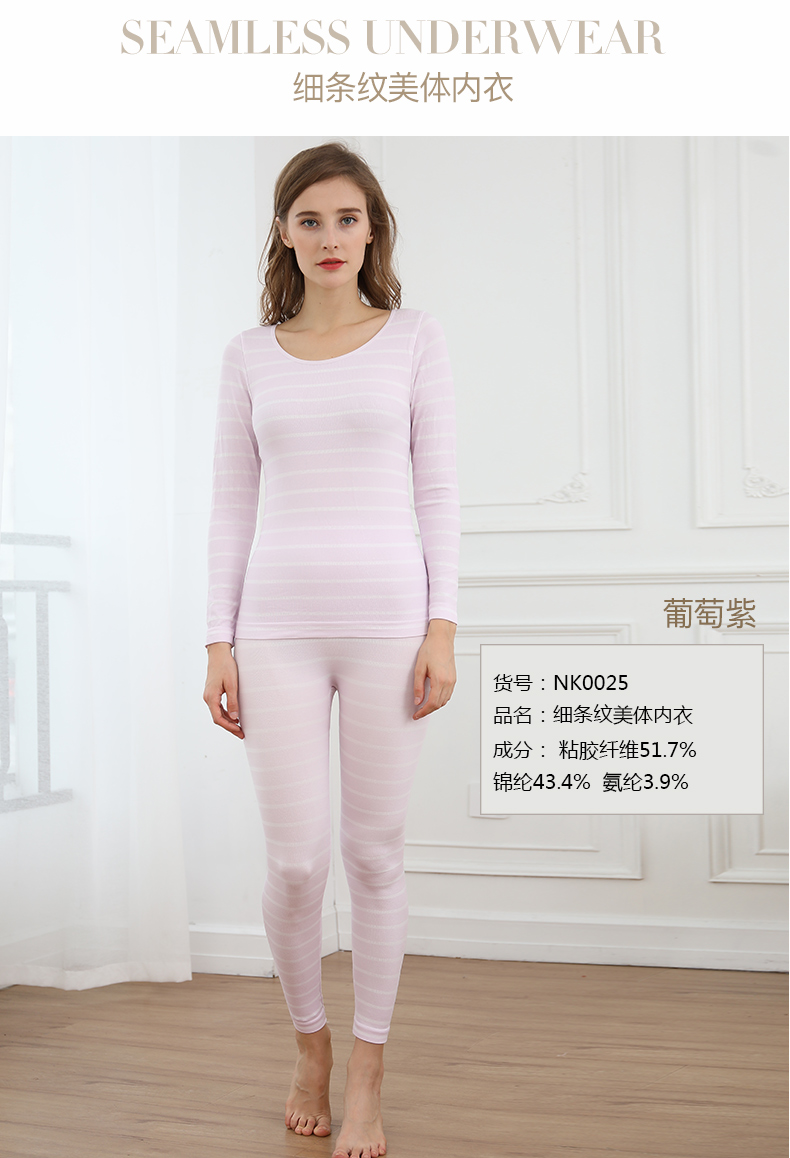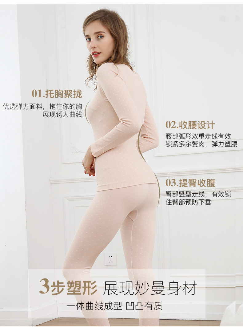 浪莎無縫提花美體保暖內衣套裝女士緊修身薄款秋衣秋褲性感打底冬